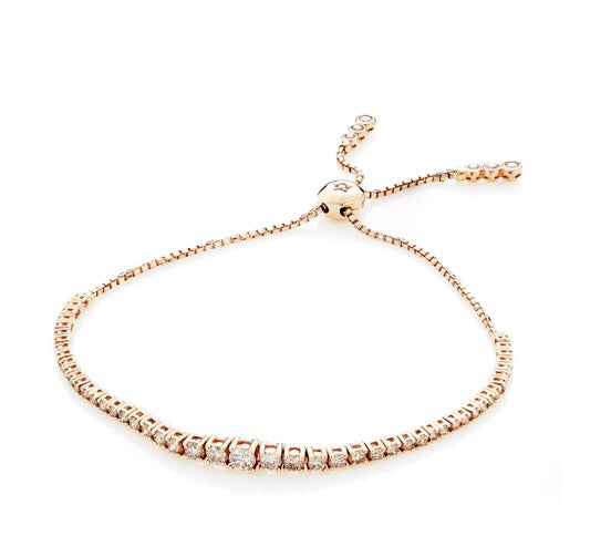 Adjustable Tennis Bracelet in 18 kt White-, Yellow- or Rosegold. With diamonds in different sizes and colours. Price Example: