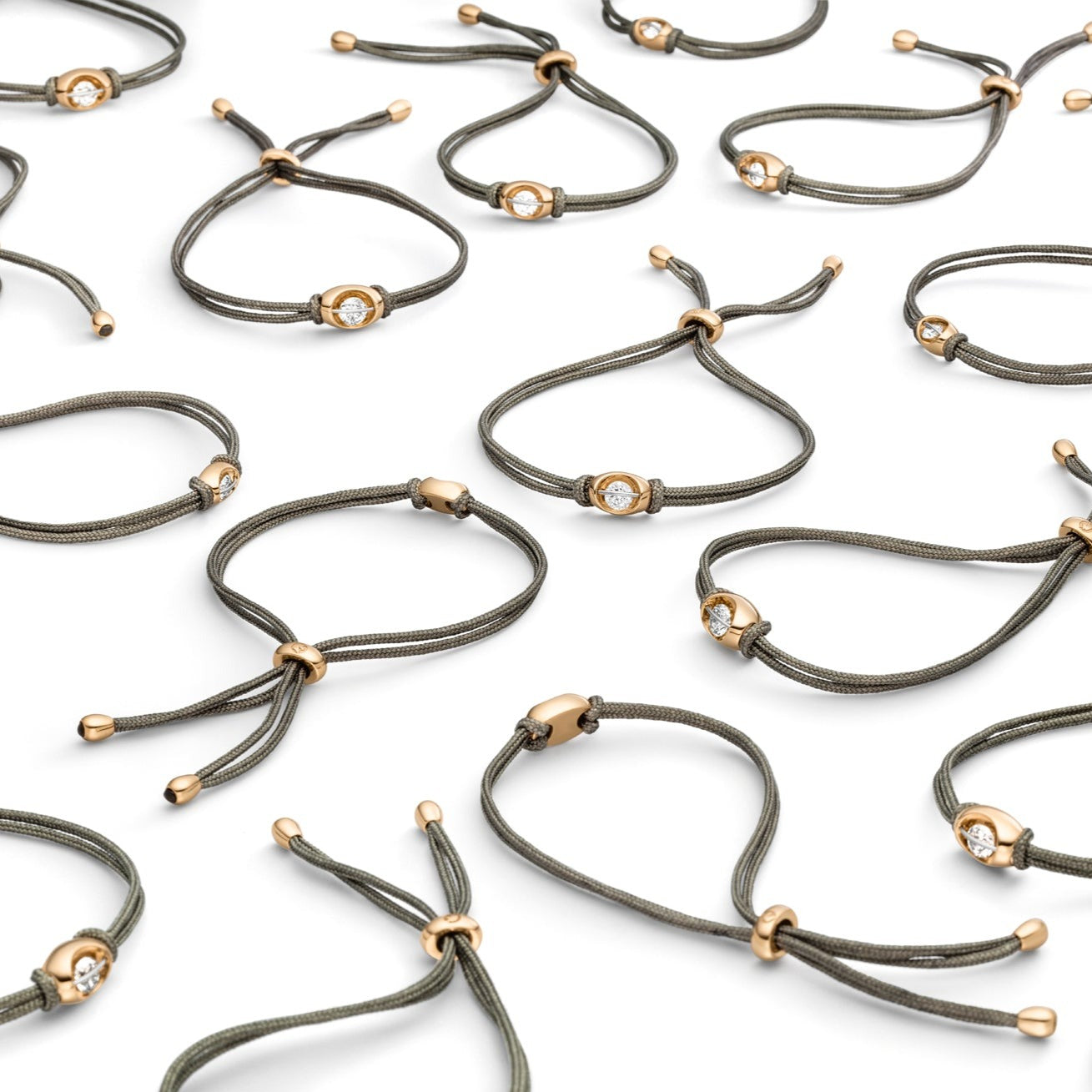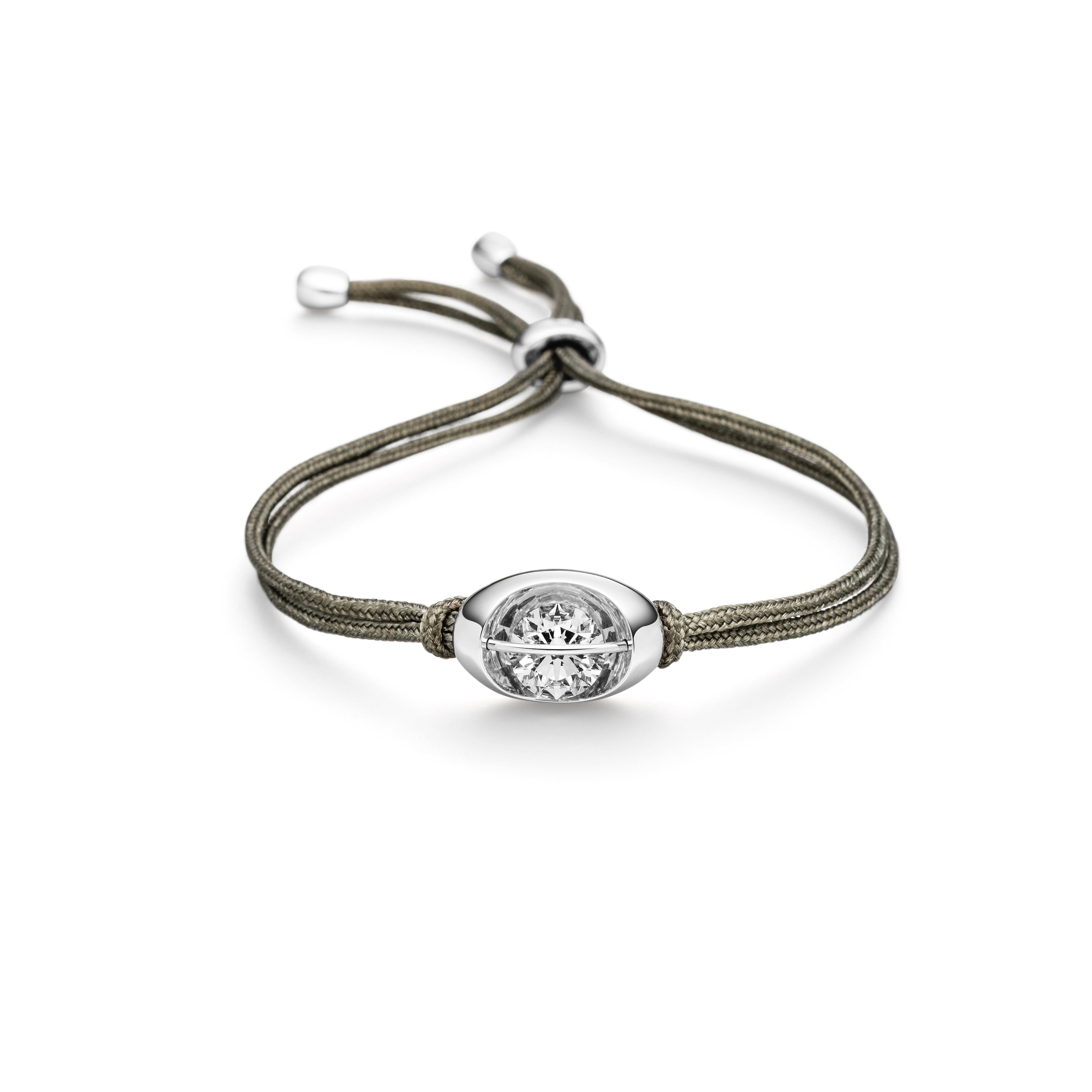 Et hverdagsarmbånd i vores "frit svævende brillant" kollektion. Nylonbåndet giver friheden til at bære armbåndet uanset om man bader i havet eller dyrker motion. Brillanterne er fattet i 18 kt guld eller hvidguld. Priser fra 34.000,-kr. Priseksempel: