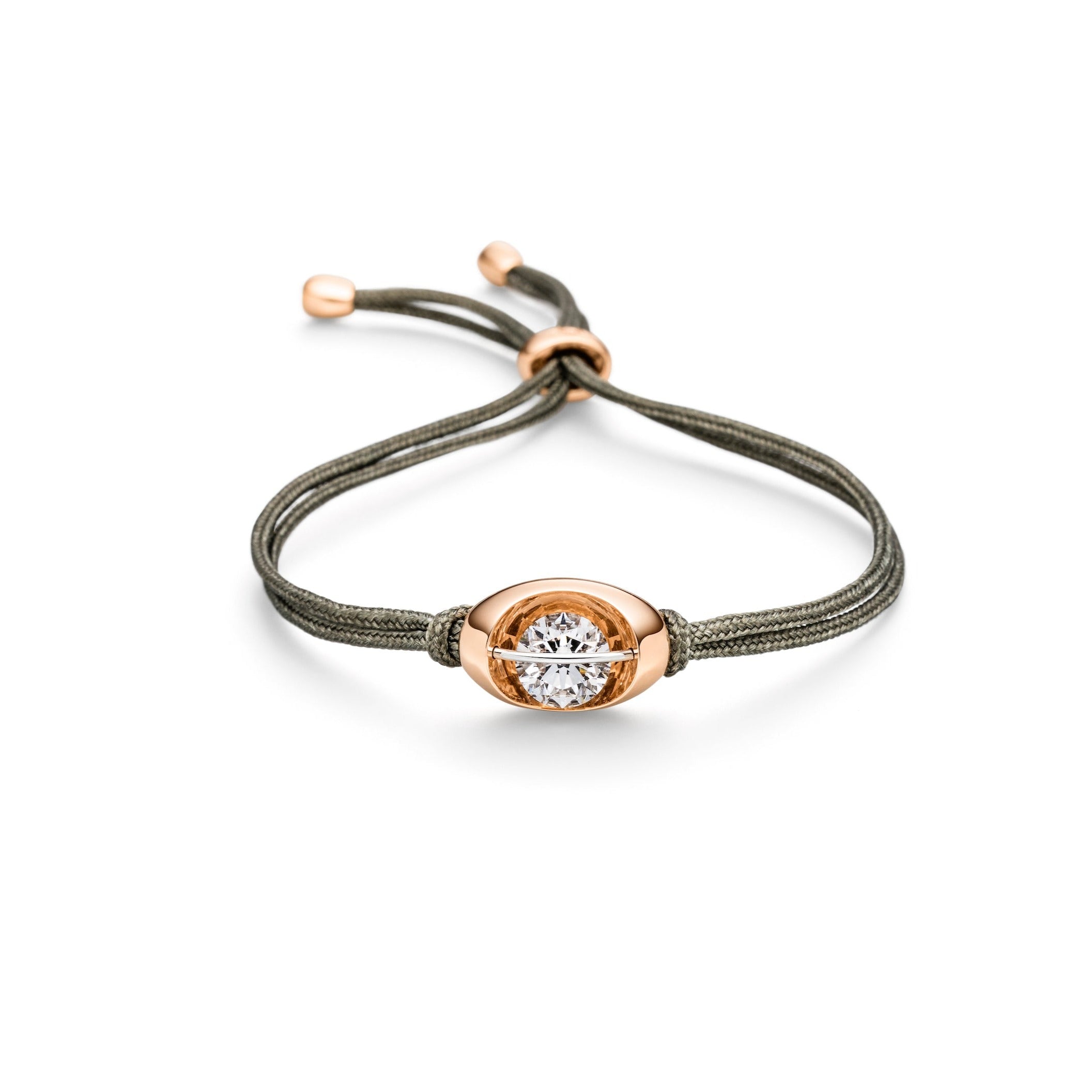 An everyday bracelet with nylon or leather strap, base in 18kt gold, and the world´s first free Floating Diamond mechanism, that lets the diamond hover and move freely in the base. Matches the rings, earrings and necklaces from our Floating Diamond collection. Available in various carat weights and colors. Price from 34.000,-kr. Price Example: