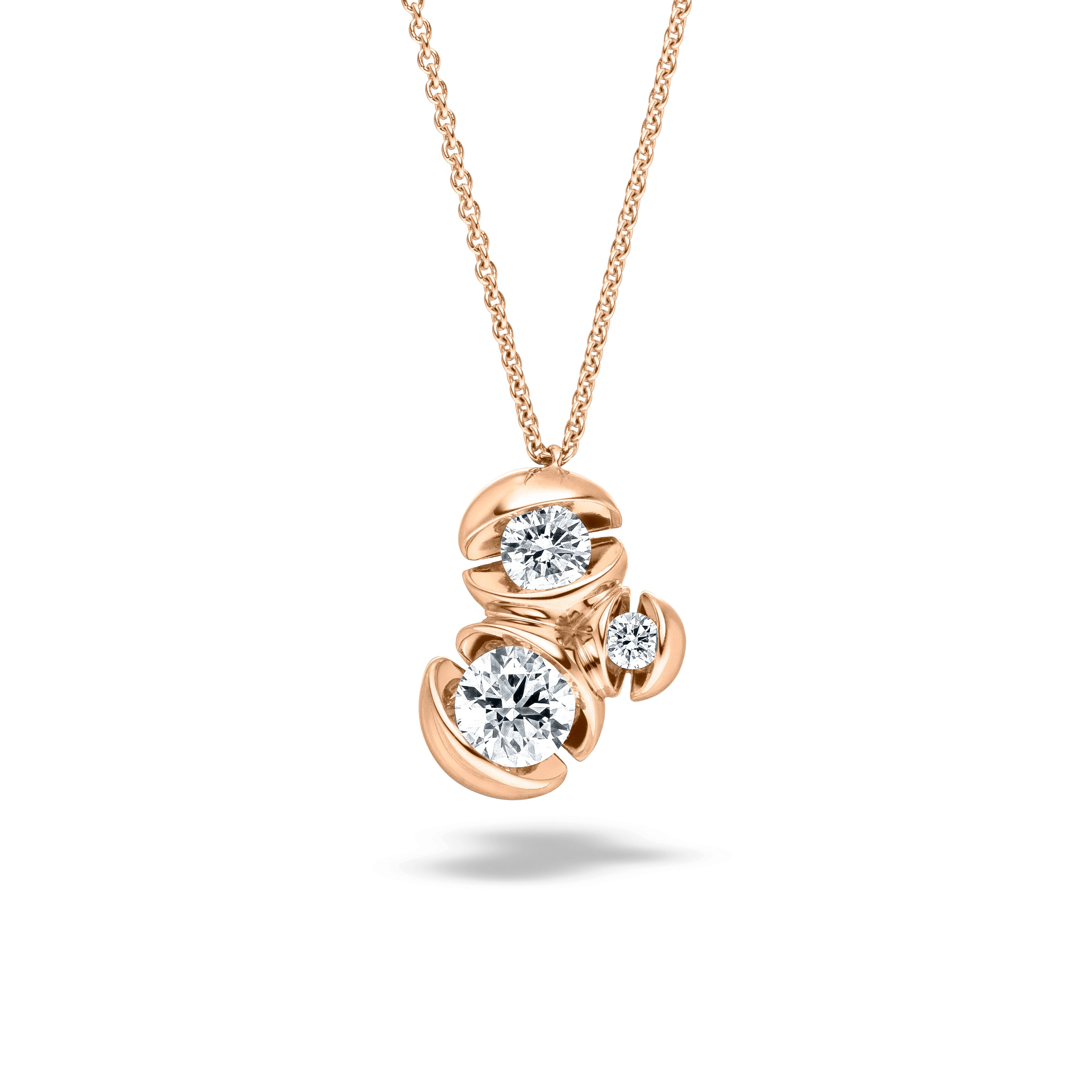 - 18 kt rosaguld med 3 vedhæng med brillanter 128.000,-kr