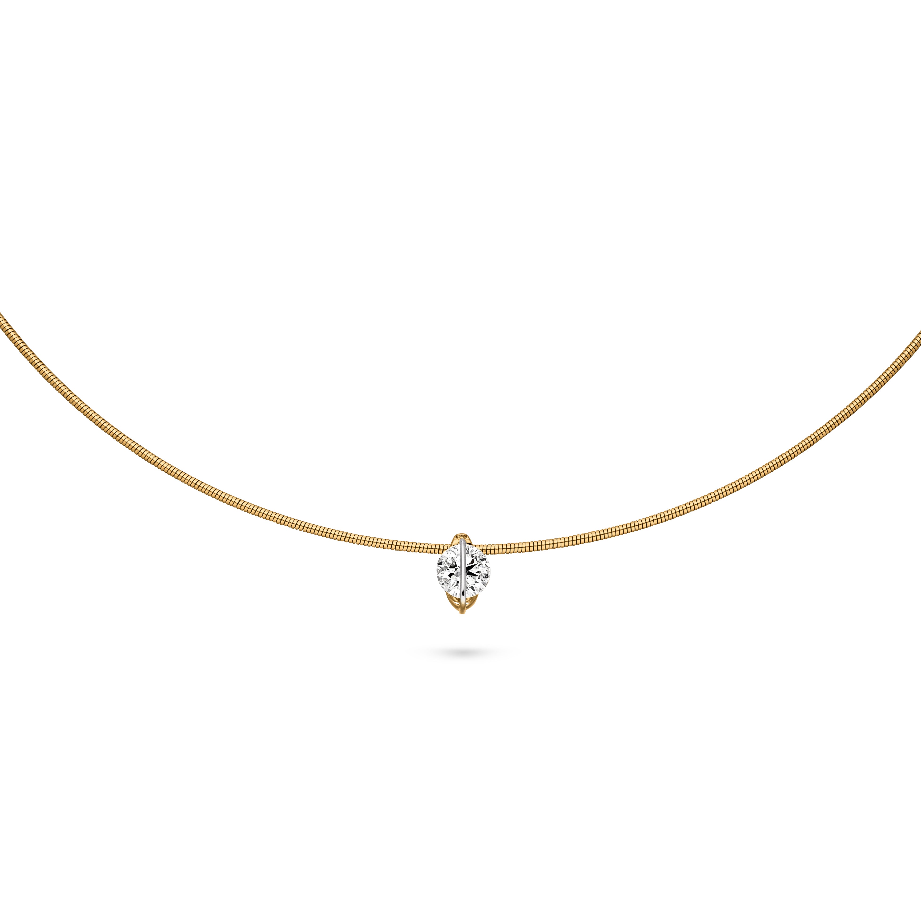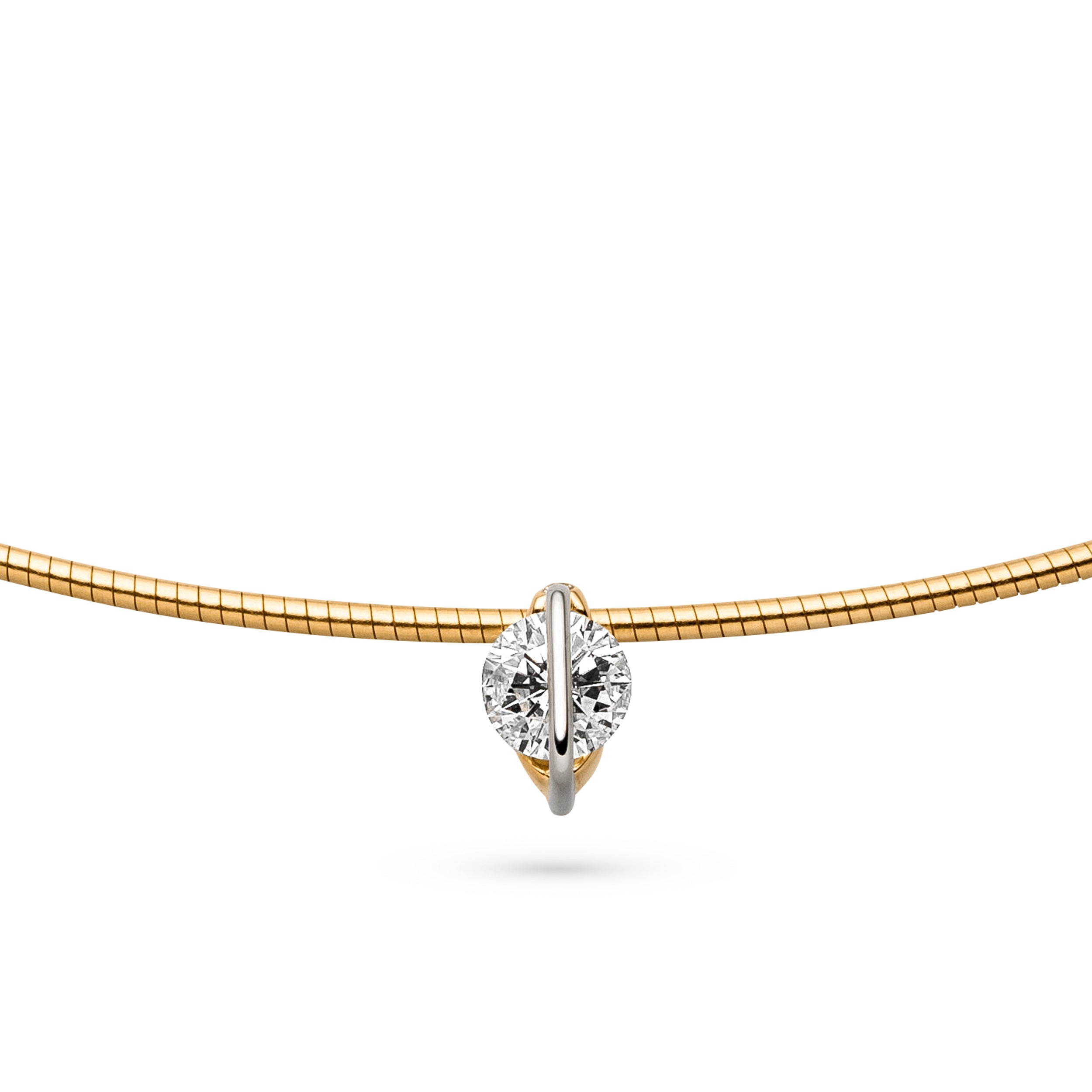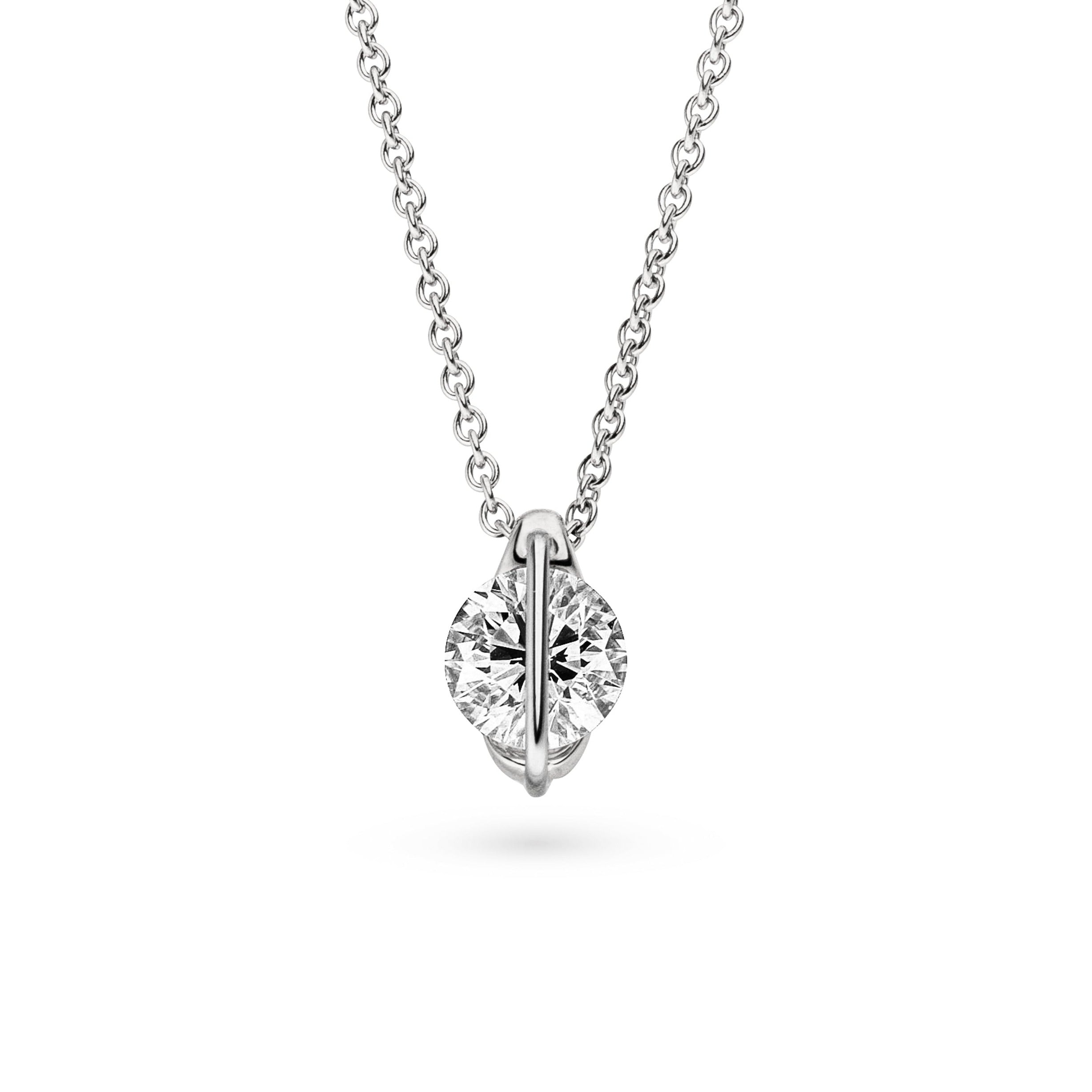 Necklace with the world´s first free Floating Diamond mechanism, that lets the diamond hover and move freely in its base. Matches the rings, earrings and bracelets from our Floating Diamond collection. Available in various colors and carat weights. Price from 35.000,-kr. Price Example: