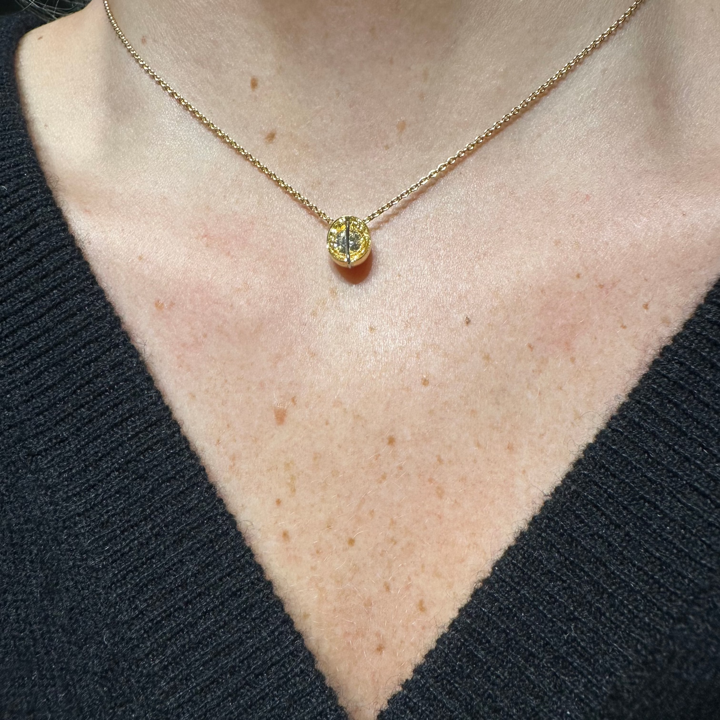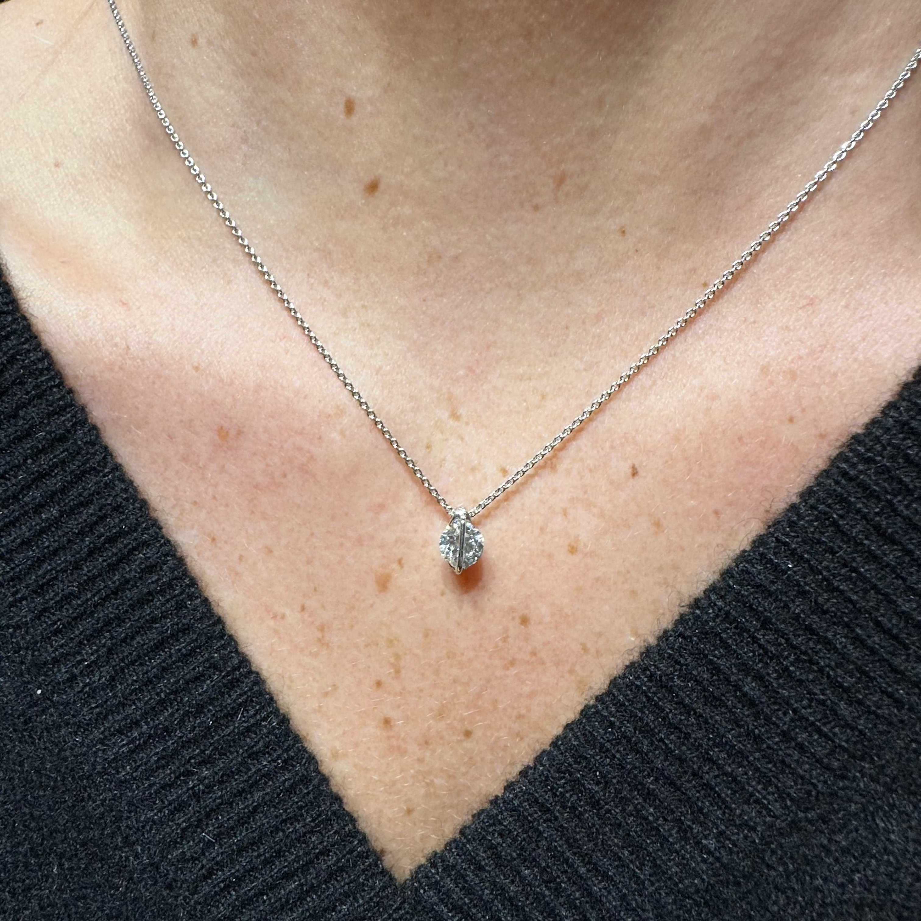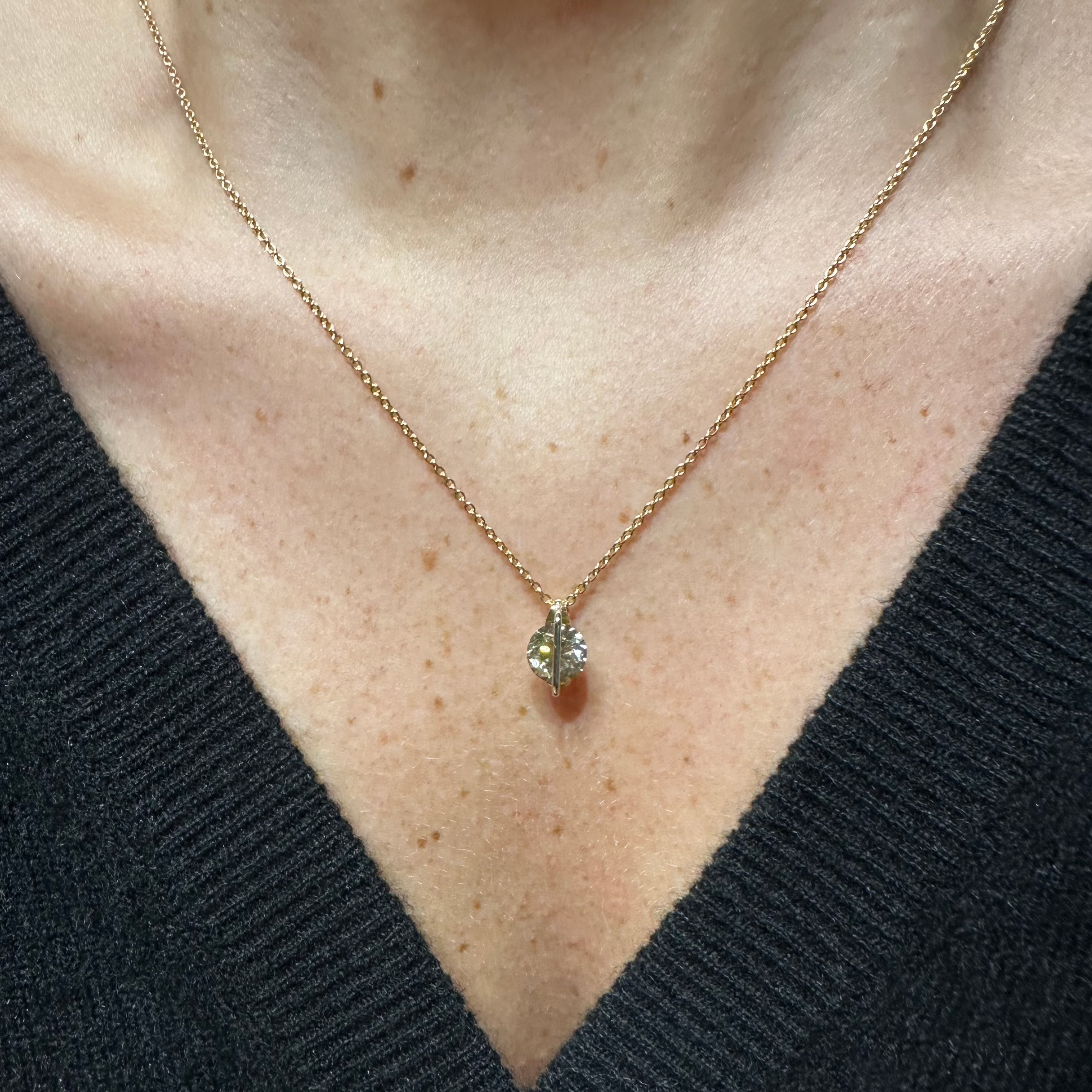 Necklace with the world´s first free Floating Diamond mechanism, that lets the diamond hover and move freely in its base. Matches the rings, earrings and bracelets from our Floating Diamond collection. Available in various colors and carat weights. Price from 35.000,-kr. Price Example: