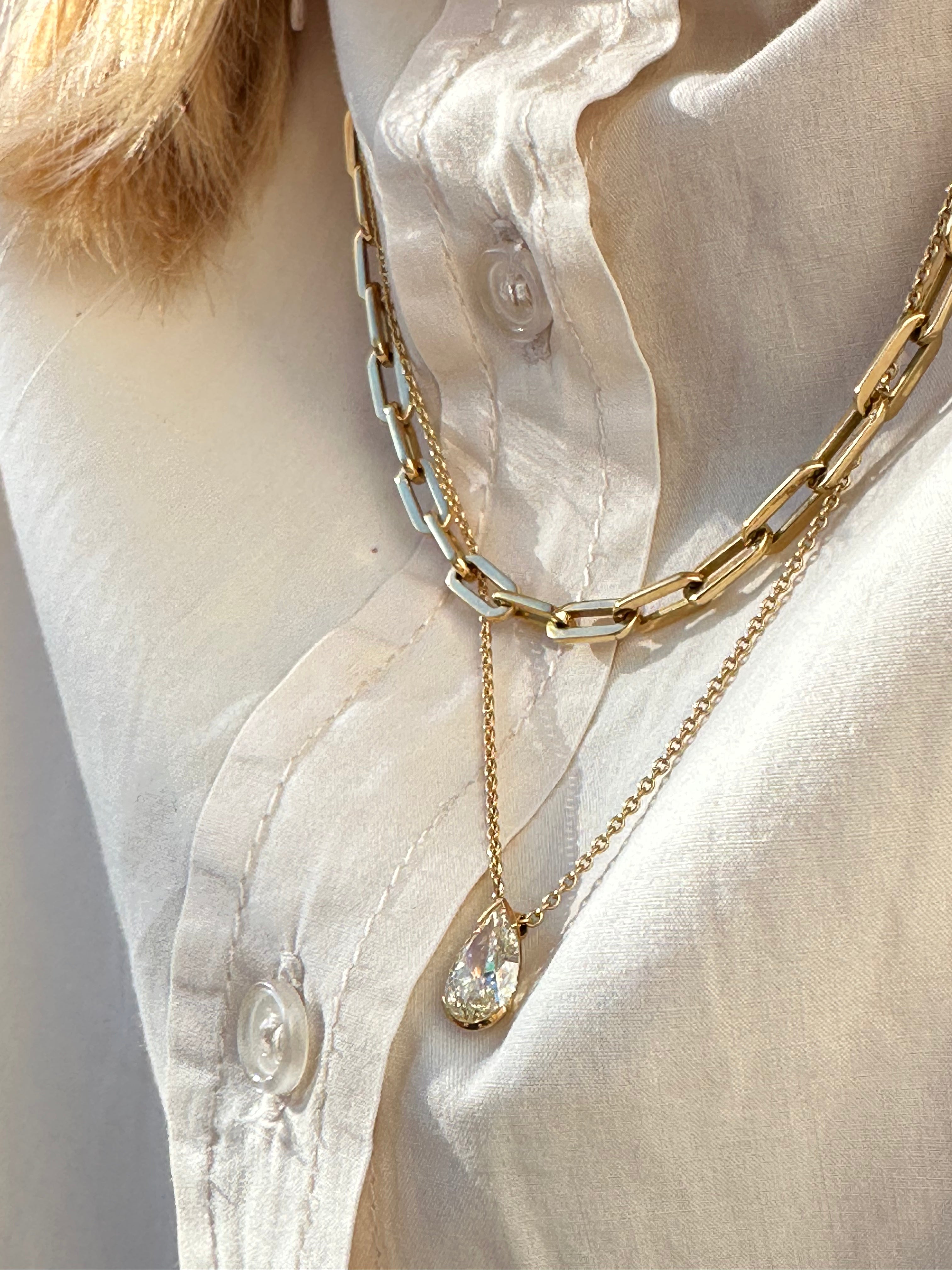 The chain necklace in 18 kt White-, Yellow- or Rosegold. With or without link with diamonds in different sizes and colours. Price Example: